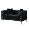 Home > 59.4 Inch Wide Black Velvet Sofa with Jeweled buttons,Square Arm ,2 Pillows