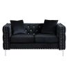 59.4 Inch Wide Black Velvet Sofa with Jeweled buttons,Square Arm ,2 Pillows