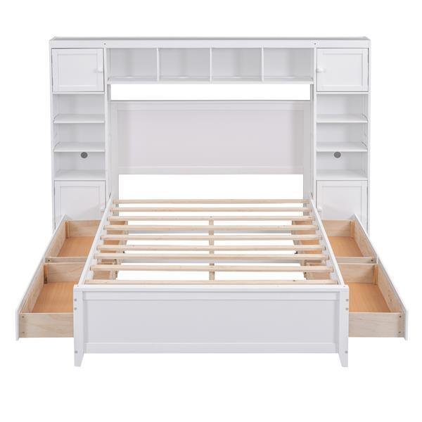 Home > Full Size Wooden Bed With All-in-One Cabinet and Shelf, White
