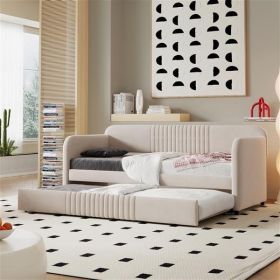 Upholstered Daybed Sofa Bed Twin Size With Trundle Bed and Wood Slat ,Beige (Color: as picture)