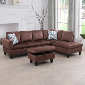 Brown Microfiber 3-Piece Living Room Sofa Set B